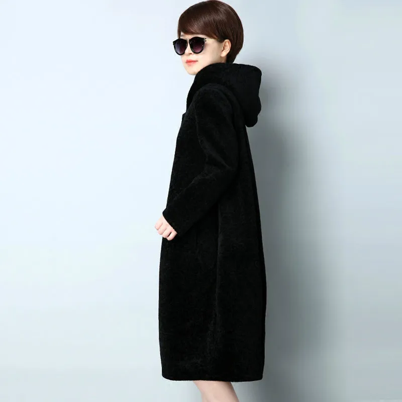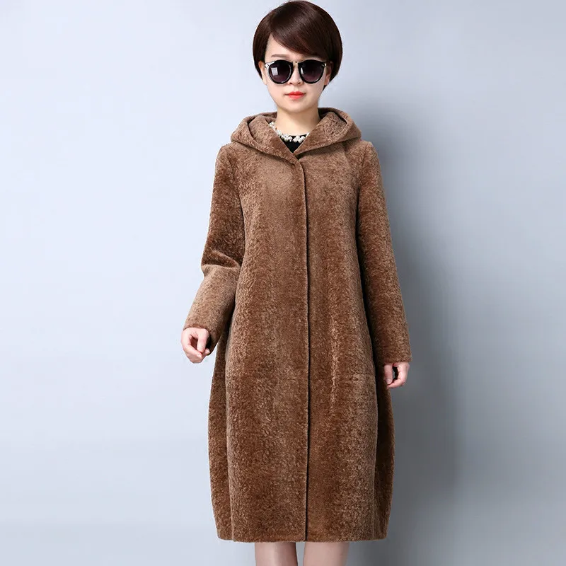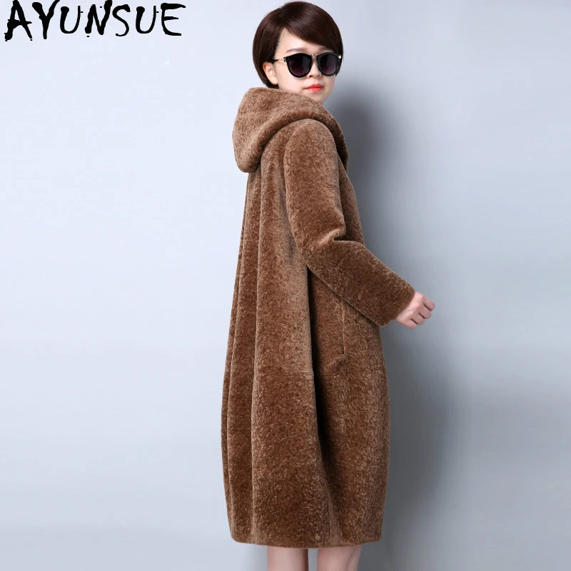 Product Name: Женское шерстяное пальто AYUNSUE, пальто из 100% овечьей шерсти с капюшоном, большие размеры, зима 2019