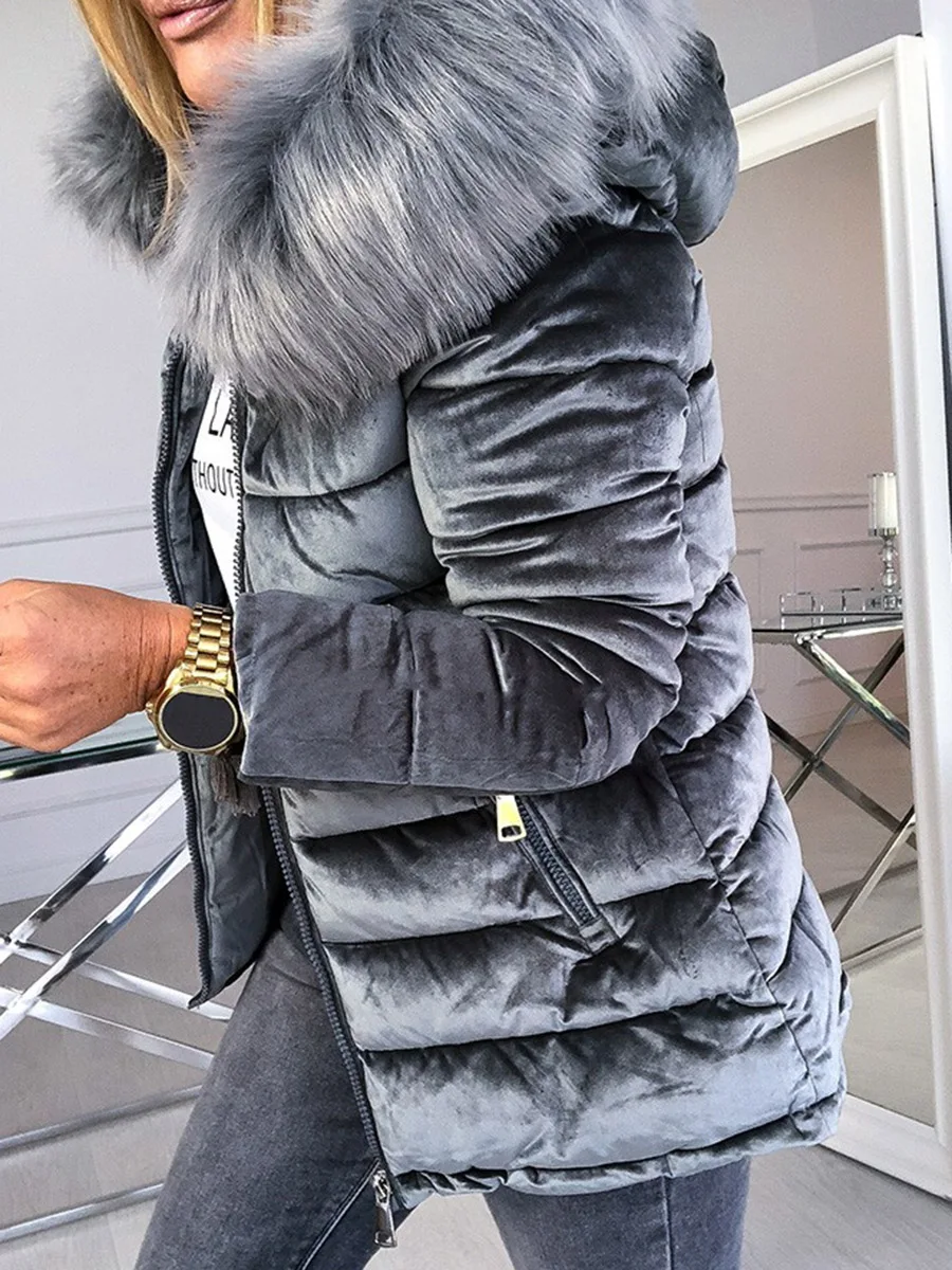 Product Name: Женские куртки с хлопковой подкладкой, серые, розовые, большие размеры 4XL, капюшон, меховой воротник, толстая модная базовая зимняя верхняя о...