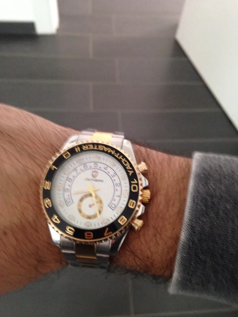 Product Name: Золотые часы для мужчин GMT вращающийся ободок сапфировое стекло браслет из нержавеющей стали Спортивные кварцевые наручные часы reloj relogio 44 м...