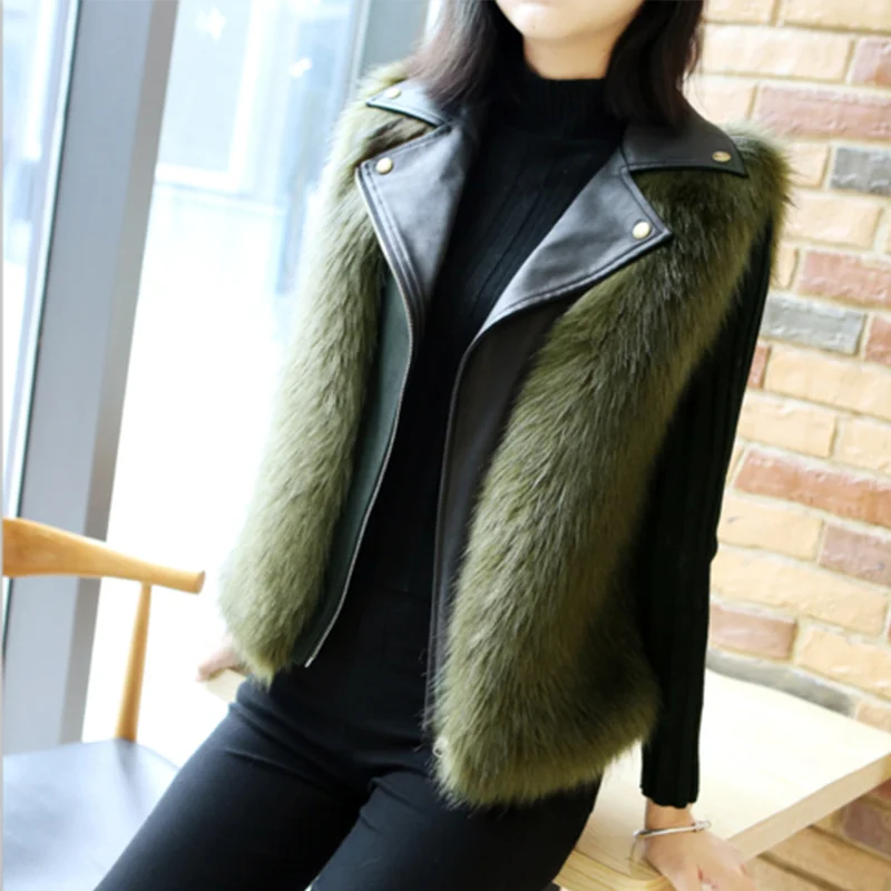 (56% Off) Купить Искусственный Лисий мех ПУ Лоскутная Женская жилетка зимнее пальто из искусственной кожи без рукавов Жилеты для женщин 2019 модный теплый ко... Цена Дешево