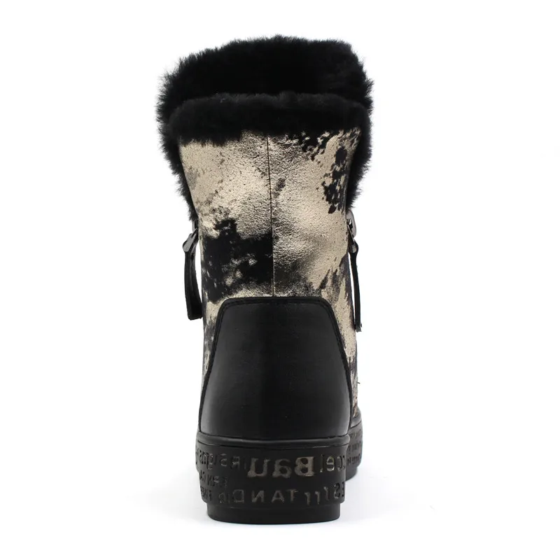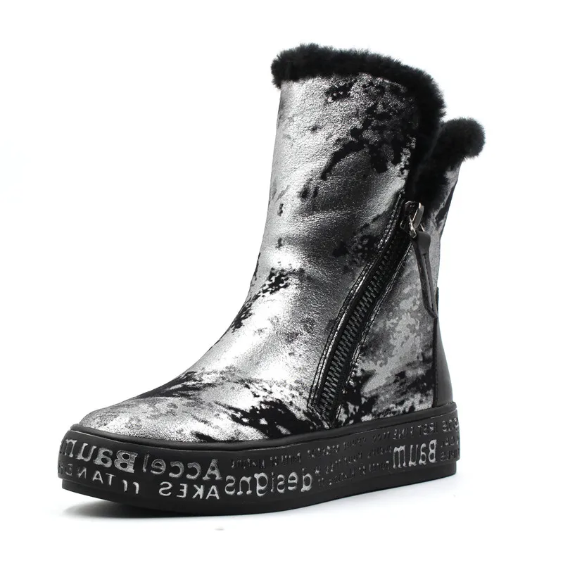 Product Name: FUN VILLE Новые модные женские зимние сапоги; цвет золотой, серебряный; натуральный мех; Шерсть; ботильоны; теплая зимняя женская обувь на молнии...