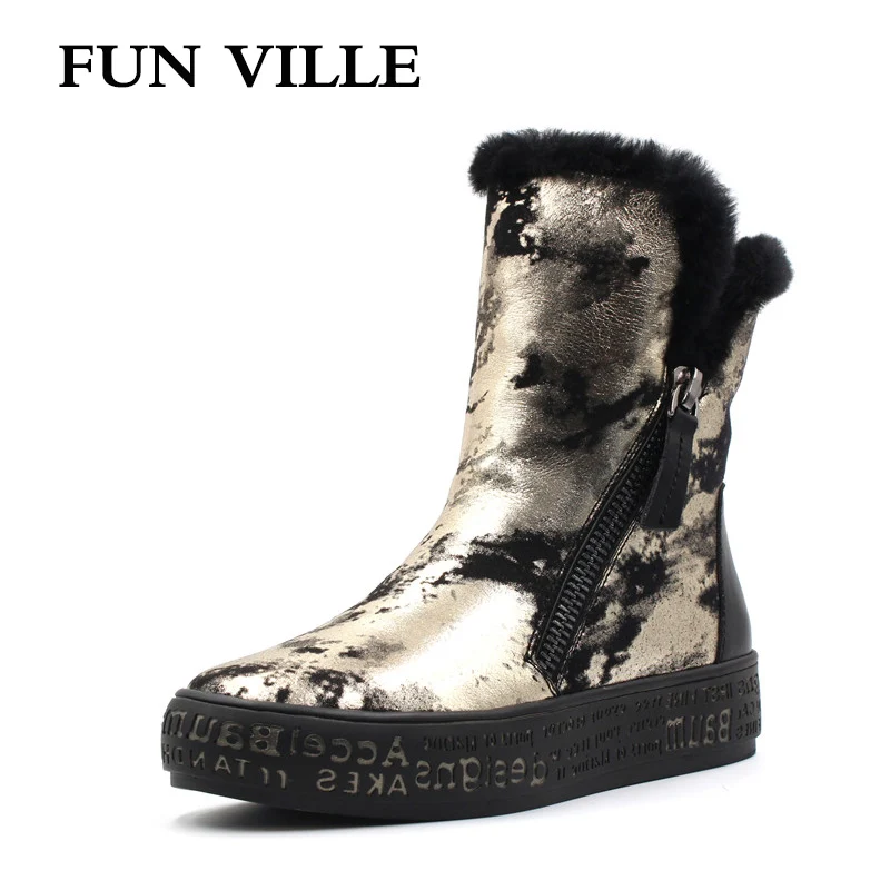 Special Offer FUN VILLE Новые модные женские зимние сапоги; цвет золотой, серебряный; натуральный мех; Шерсть; ботильоны; теплая зимняя женская обувь на молнии... Discount 0% Today!