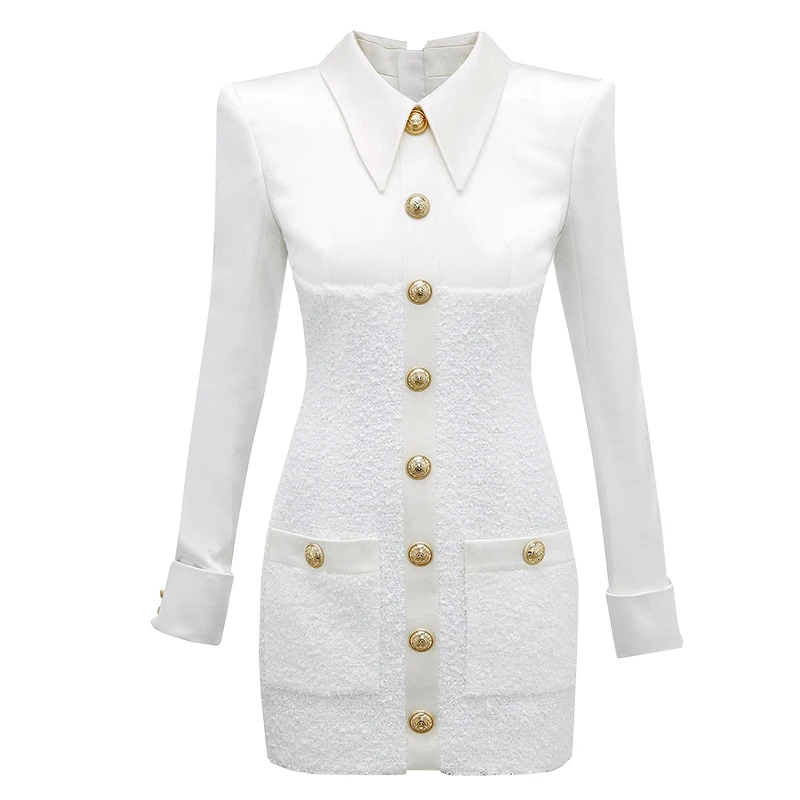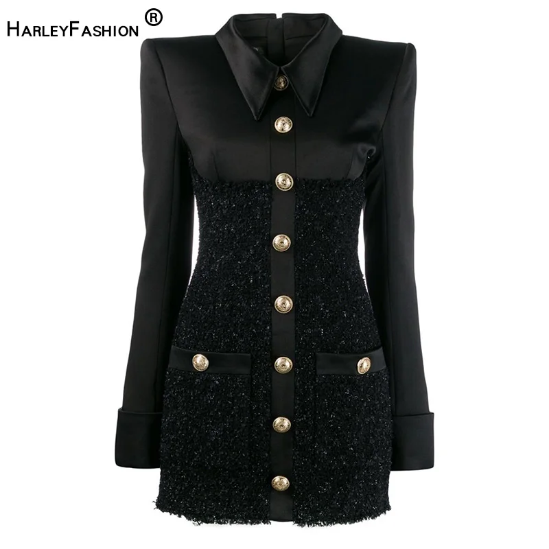 Product Name: HarleyFashion элегантное женское мини прямое однотонное Повседневное платье с отложным воротником на пуговицах тонкое твидовое лоскутное качест...
