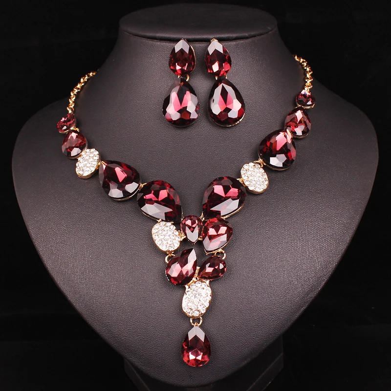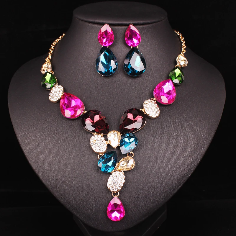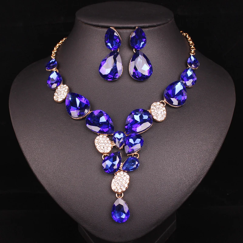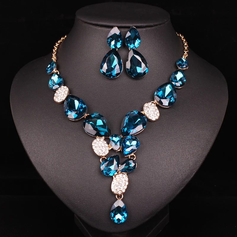 Product Name: Роскошные свадебные комплекты ювелирных изделий с большим синим кристаллом, ожерелье, серьги, набор, подарки для женщин, для свиданий, вечер...