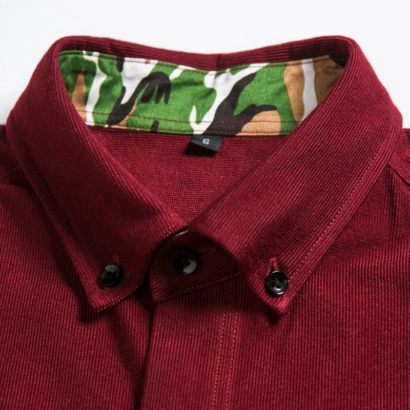 (31% Off) Купить Новая Осенняя мужская рубашка с длинными рукавами, Вельветовая Повседневная рубашка, модная брендовая однотонная приталенная одеж... Цена Дешево