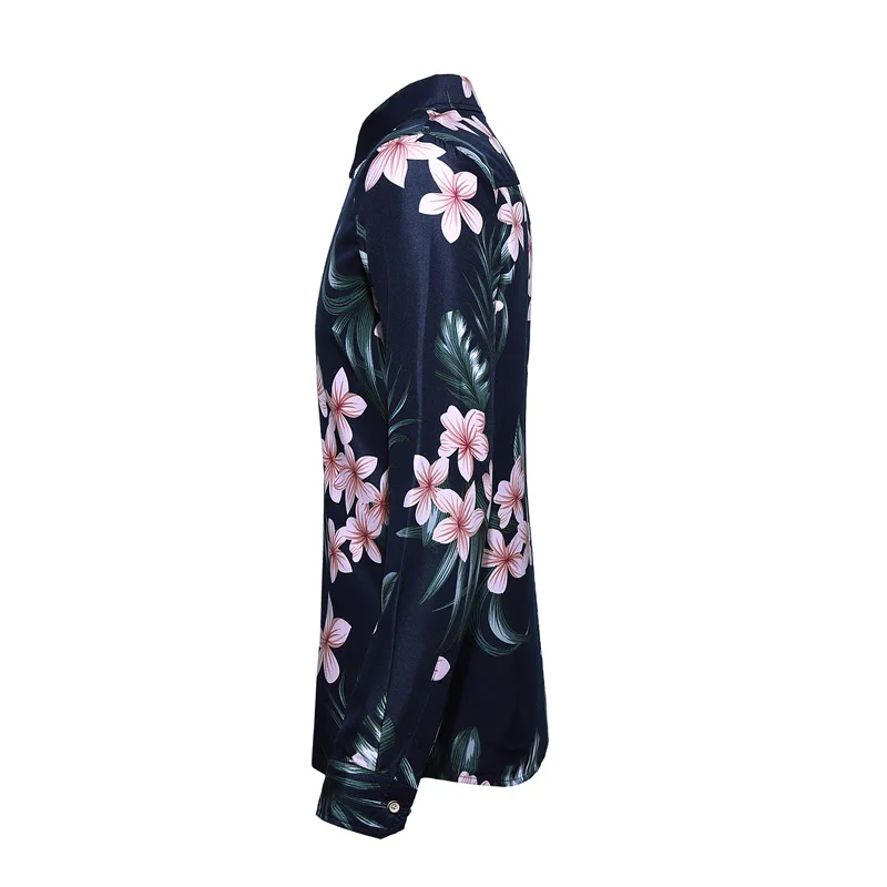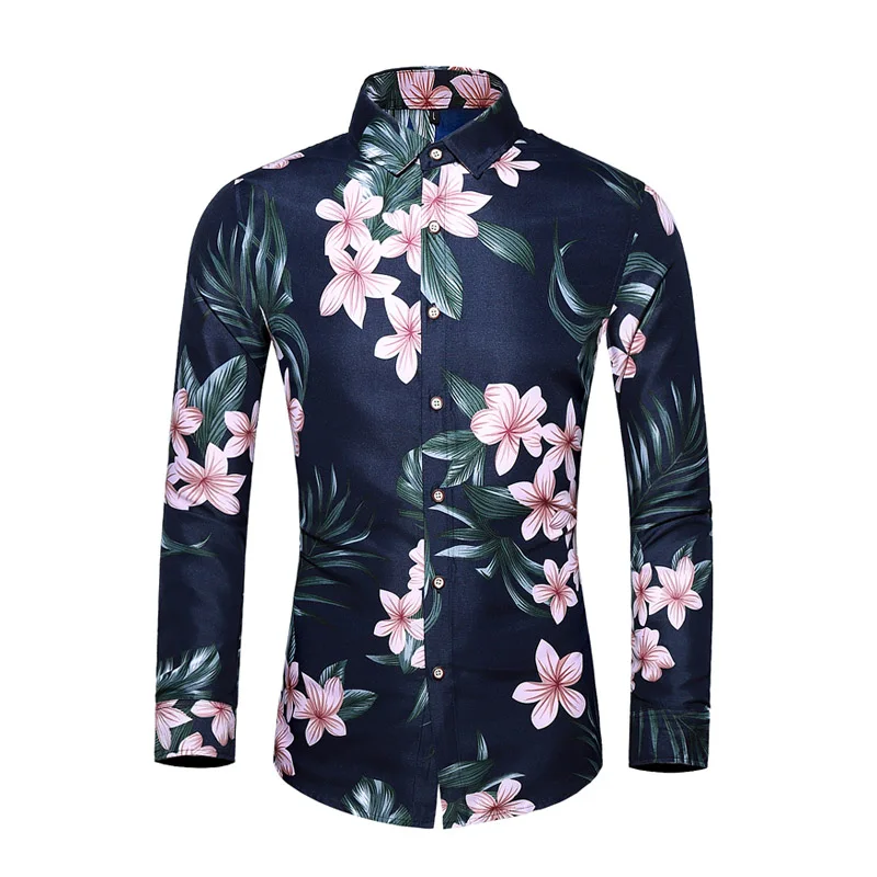 Product Name: 45 кг 120 кг Новинка осени Для мужчин, рубашка с отложным воротником; длинный рукав; пуговицы на шнуровке с цветочным принтом дизайн Гавайские ...