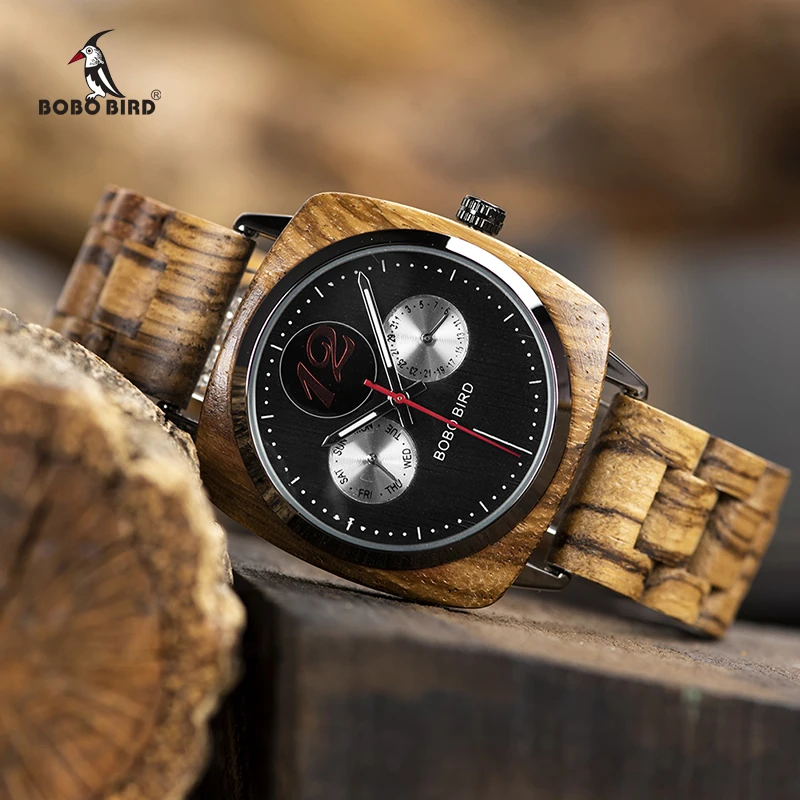 Product Name: Мужские часы BOBO BIRD, стильные деревянные часы, мужские наручные часы в деревянной подарочной коробке, erkek kol saati с логотипом