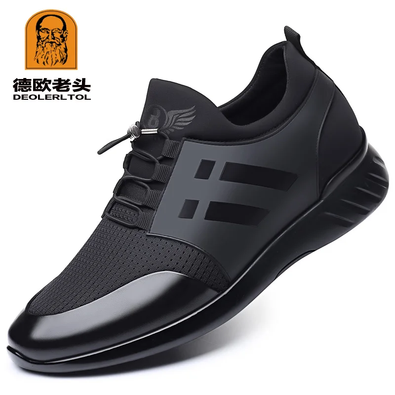 Product Name: Мужская обувь из лайкры и коровьей кожи, повседневная обувь черного цвета, увеличивающая рост, на 6 см, лето 2019