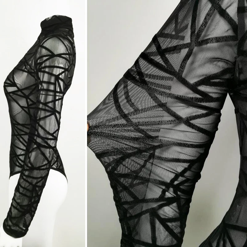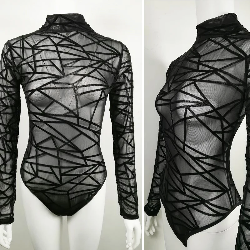 Special Offer Женское боди с длинным рукавом ADEWEL, черное Сетчатое бархатное боди с геометрическим рисунком, кружевной комбинезон Discount 42% Today!