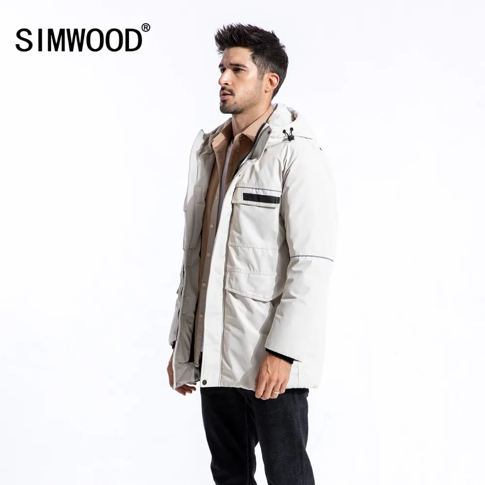 Special Offer Мужское зимнее пальто SIMWOOD, приталенная длинная куртка с карманами, парка с капюшоном, 2019, повседневная верхняя одежда, 180 Discount 49% Today!