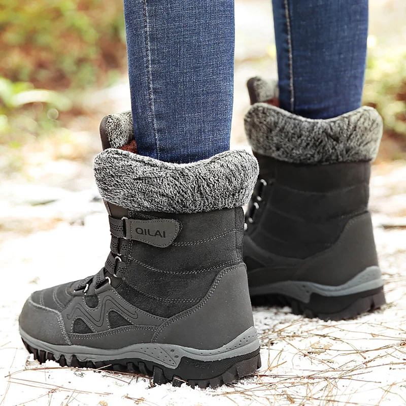 Product Name: Теплые плюшевые зимние сапоги; Женские зимние кожаные сапоги на шнуровке с круглым носком; женские ботильоны черного цвета из флока на масс...