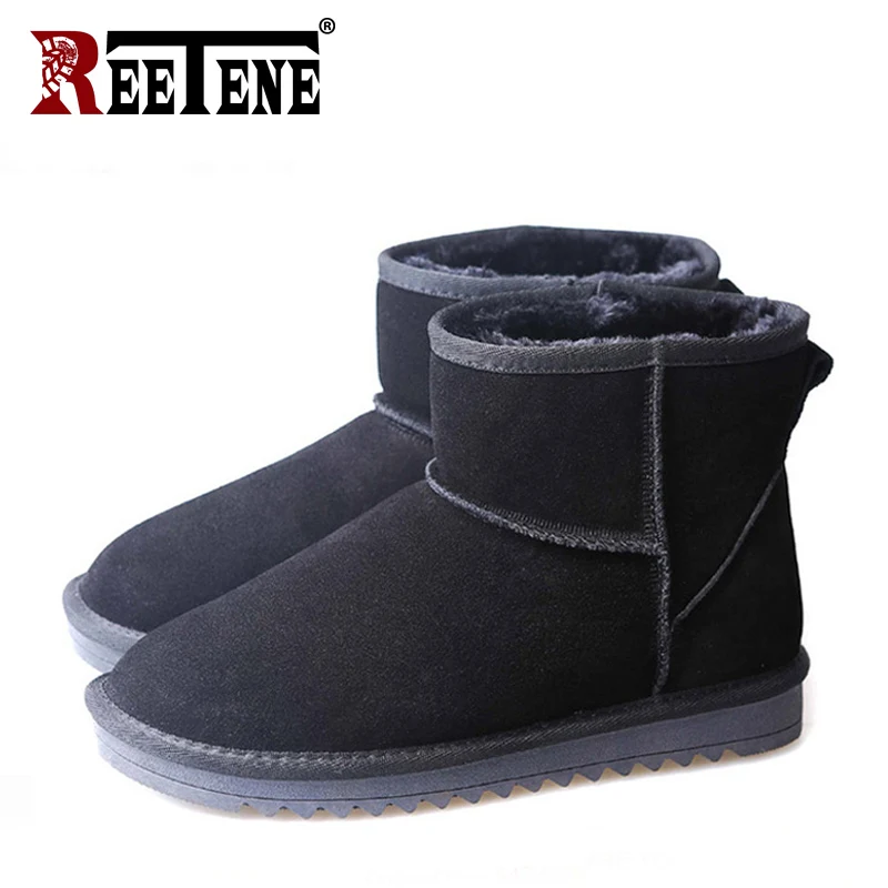 Special Offer REETENE теплые зимние мужские ботинки; повседневная мужская обувь без шнуровки; нескользящие зимние ботинки; мужская обувь на меху; Большой раз... Discount 51% Today!