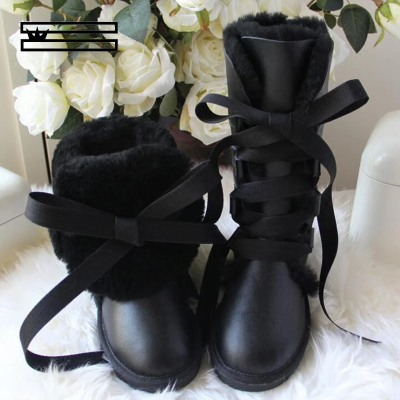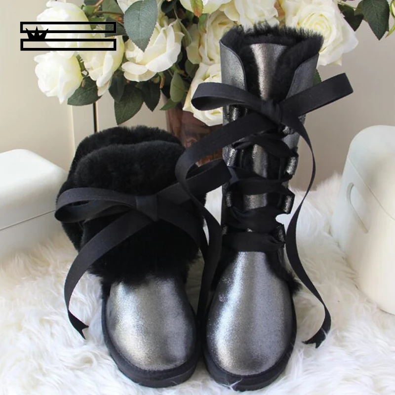 (55% Off) Купить SHUANGGUN 2019 г. Новые модные зимние ботинки из натуральной воловьей кожи 100% Классические женские высокие в австралийском стиле теплая... Продажа Дешево