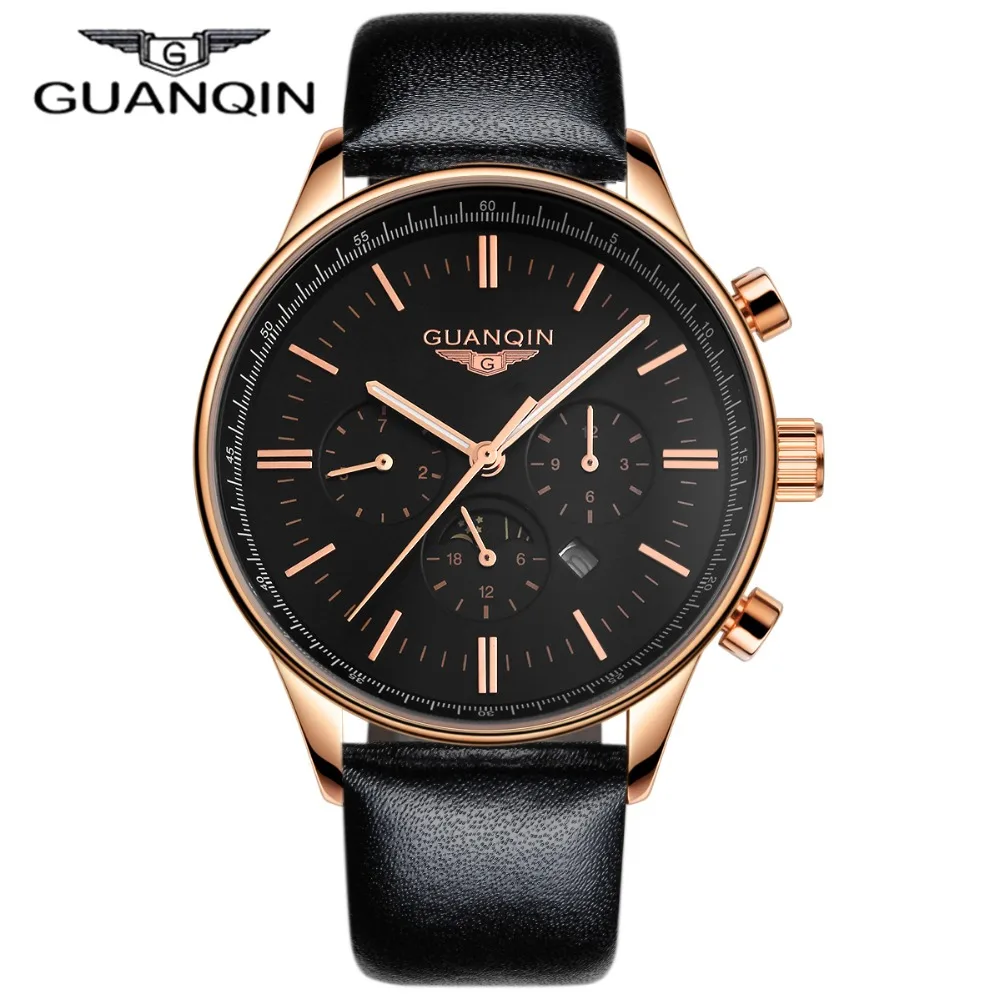 Product Name: Роскошные GUANQIN часы Мужские кварцевые часы водонепроницаемые кожаные часы мужские роскошные брендовые золотые черные наручные часы Relogio ...