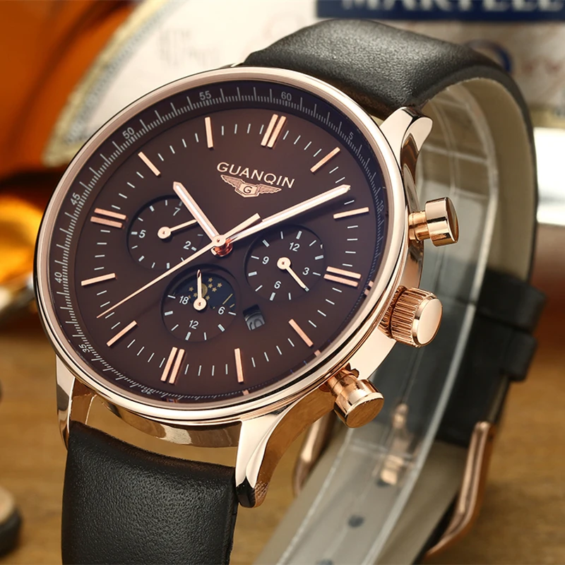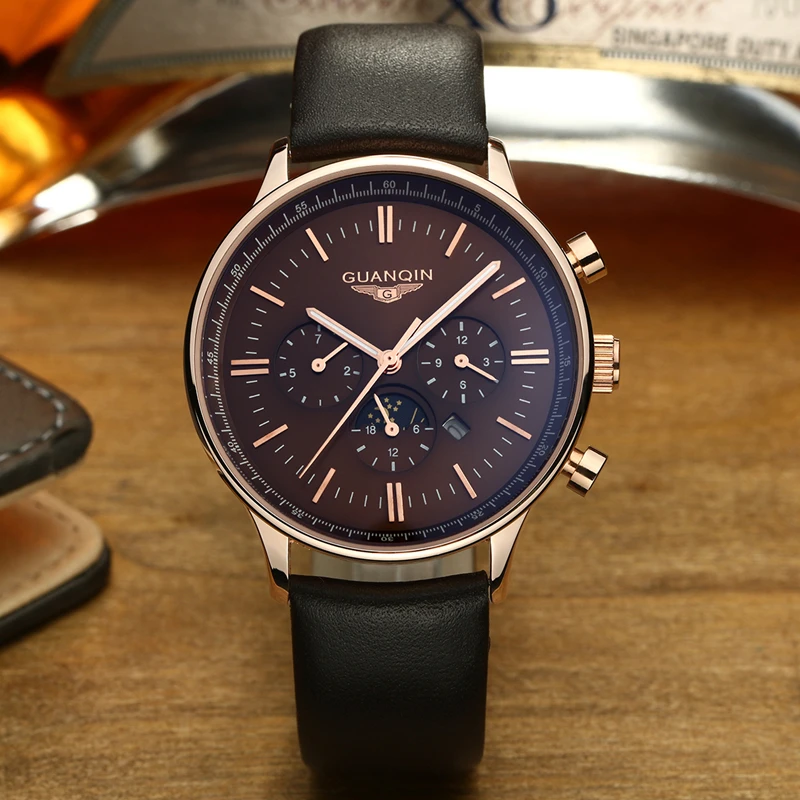 Special Offer Роскошные GUANQIN часы Мужские кварцевые часы водонепроницаемые кожаные часы мужские роскошные брендовые золотые черные наручные часы Relogio ... Discount 90% Today!