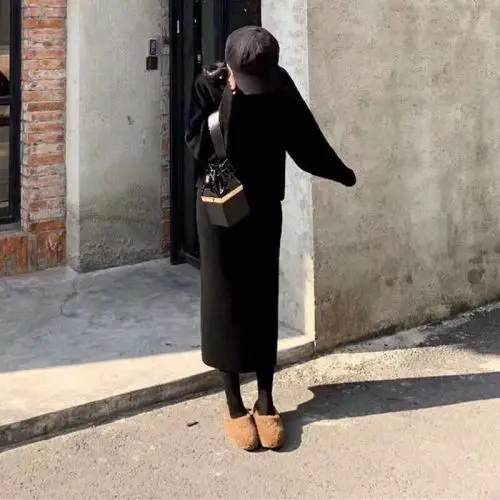 Product Name: Элегантный кашемировый свитер, юбка, 2 шт., вязаный пуловер, топ, юбка, костюм, мягкий костюм, комплект из двух предметов, Женский трикотажный ...