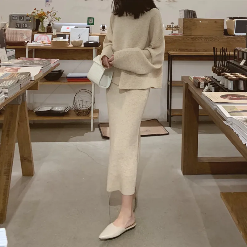 Special Offer Элегантный кашемировый свитер, юбка, 2 шт., вязаный пуловер, топ, юбка, костюм, мягкий костюм, комплект из двух предметов, Женский трикотажный ... Discount 0% Today!