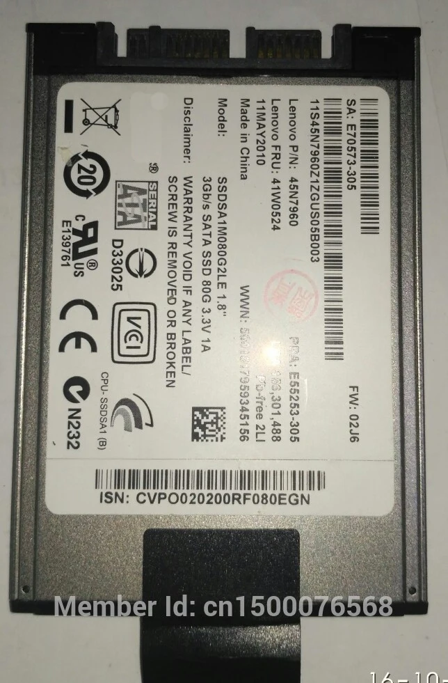 Product Name: Старый 80 Гб SSD 1,8 \"MicroSATA для HP 2740p 2730p 2530p 2540p IBM x300 x301 T400S T410S Замена MK2533GSG MK1633GSG MK1233GSG