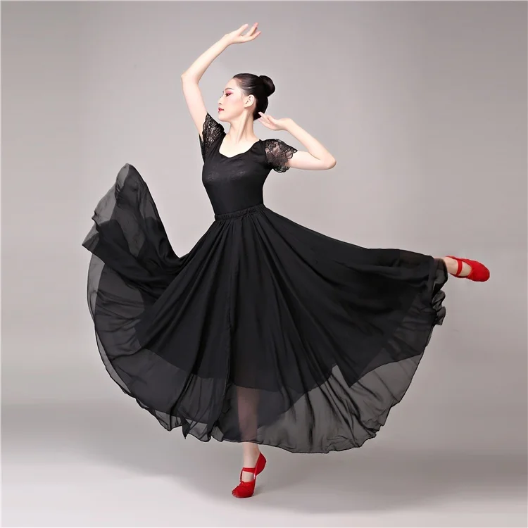 Product Name: Шифоновая испанская фламенко Современная Танцевальная Свинг Юбка эластичная талия бальный костюм танцевальная одежда длинная 914 751