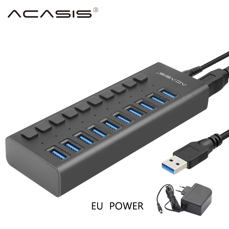 (30% Off) Купить Acasis высокоскоростной сплиттер 5 Гбит с промышленный USB со встроенным автономным адаптером питания для ПК Продажа Дешево