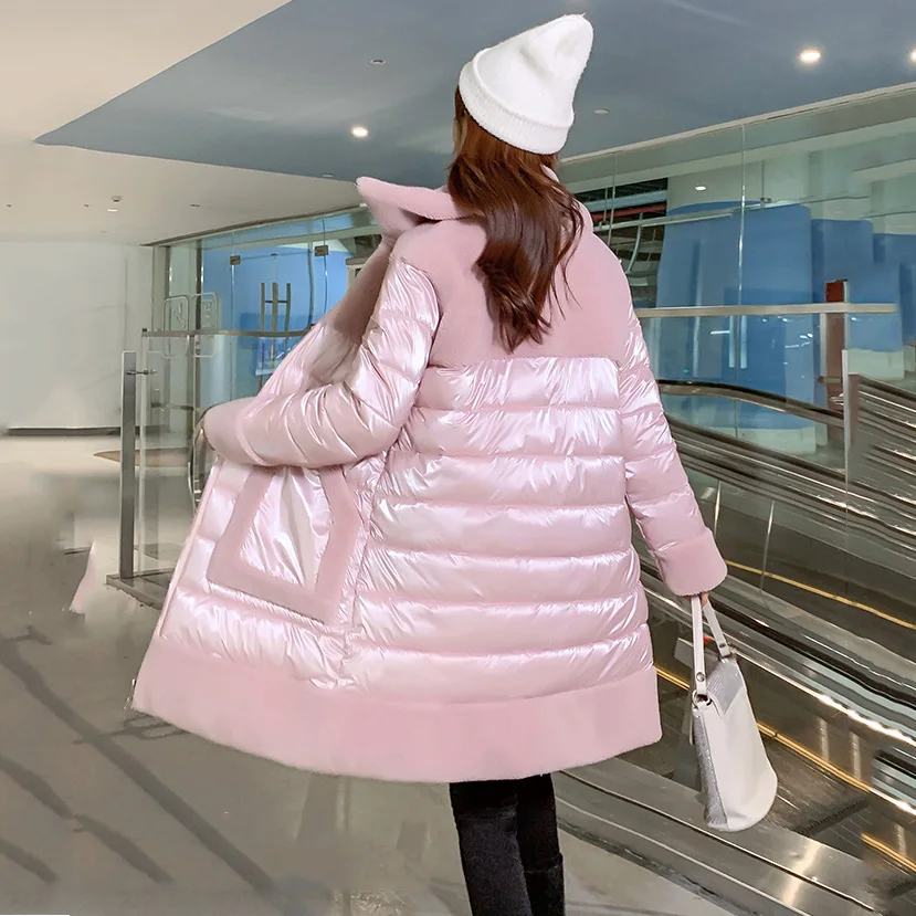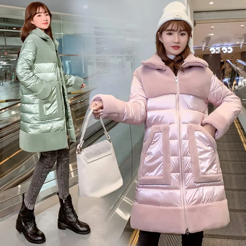Product Name: Новинка 2020, зимнее пальто, блестящий пуховик, хлопок, длинная парка для женщин, из овечьей шерсти, куртка для женщин, большой размер, свободны...