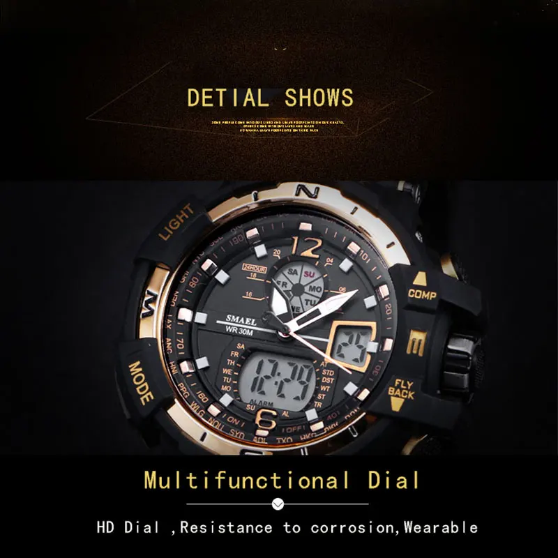 Product Name: SMAEL часы мужские цифровые спортивные водонепроницаемые часы золотые модные люксовый бренд хронограф кварцевые электронные военные наручн...