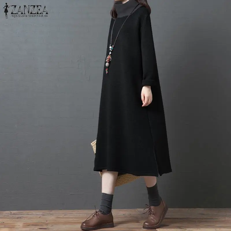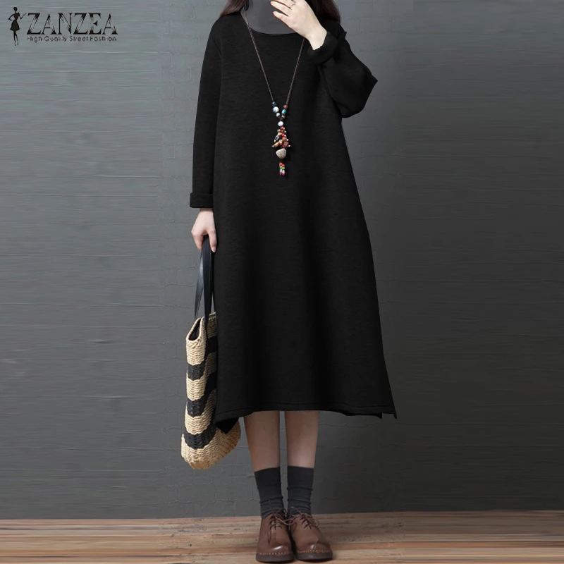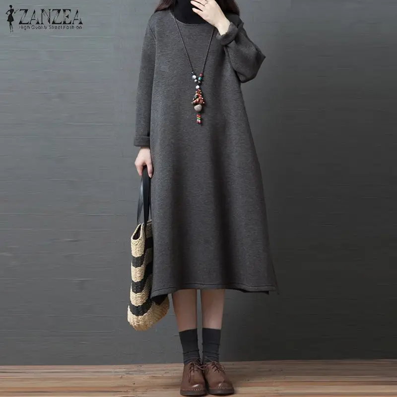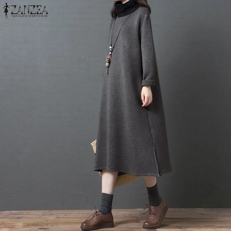 (37% Off) Купить 2019 ZANZEA женское платье со стоячим воротником, Женская толстовка с длинным рукавом и капюшоном, Повседневное карманами, сарафан миди,... Цена Дешево