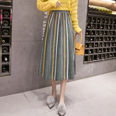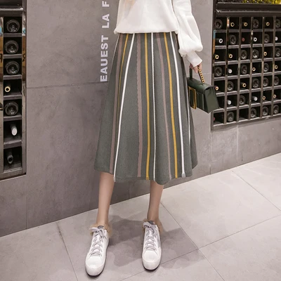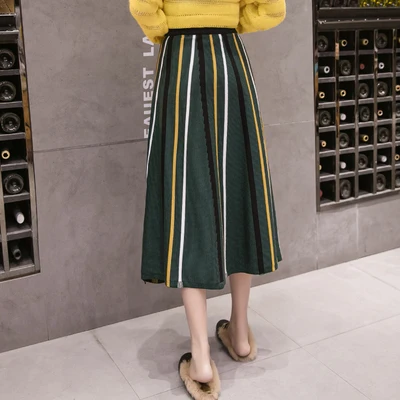 Special Offer Зимние шикарные вязаные юбки, Женская Полосатая юбка миди с высокой талией, Осенний винтажный свитер, юбка пачка Discount 40% Today!