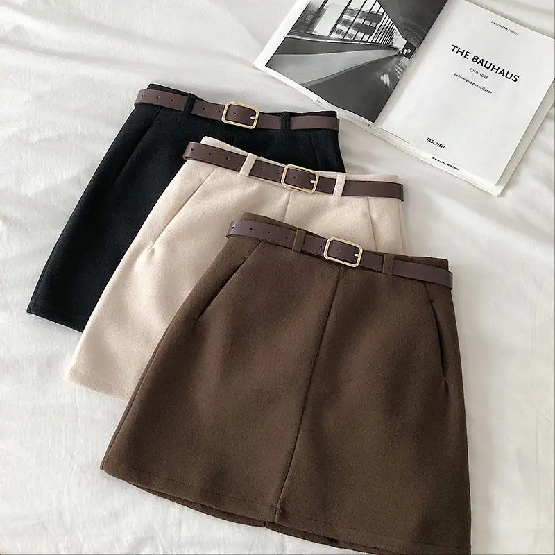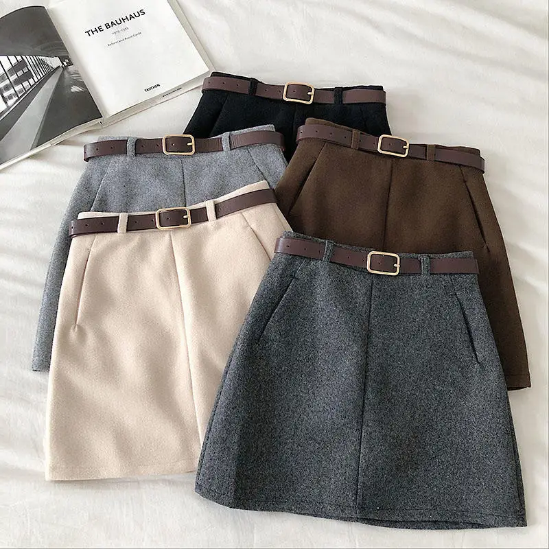 Product Name: Однотонные шерстяные юбки женские Saia мини юбки женские Faldas теплые зимние короткие женские юбки с ремнем Jupe Femme Q2149