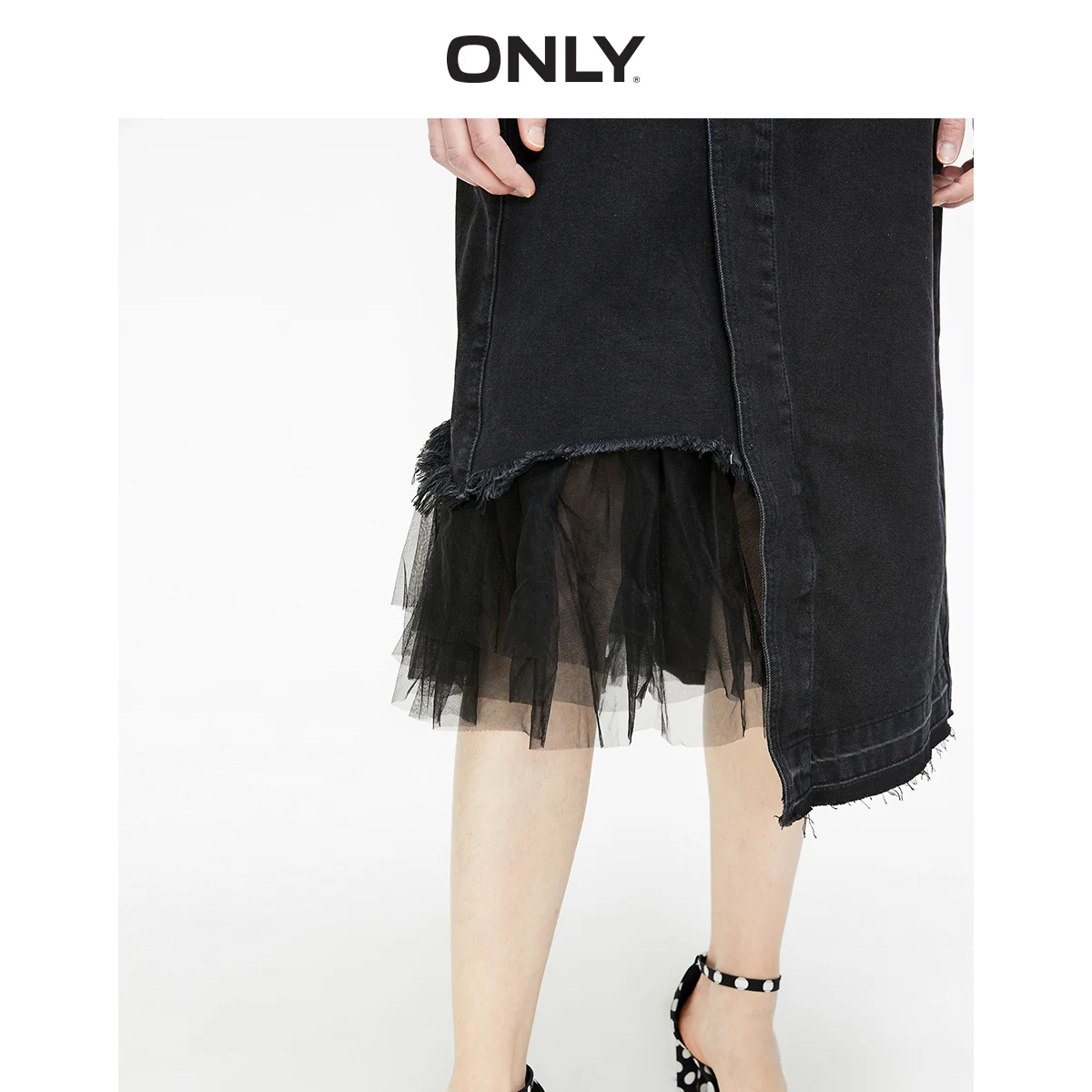 Product Name: Только женская джинсовая юбка трапеция с высокой посадкой и накладными петлями | 119237517
