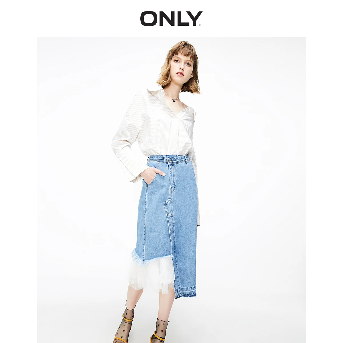(61% Off) Купить Только женская джинсовая юбка трапеция с высокой посадкой и накладными петлями | 119237517 Цена Дешево