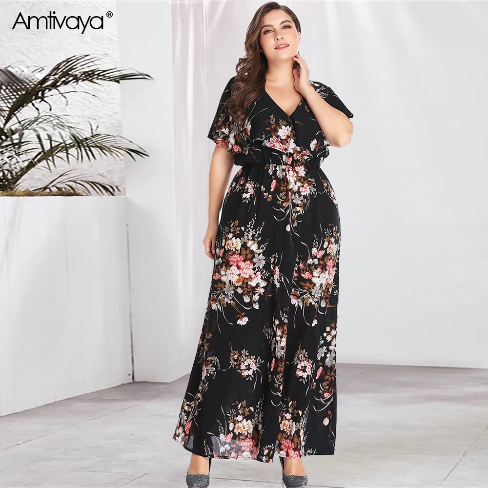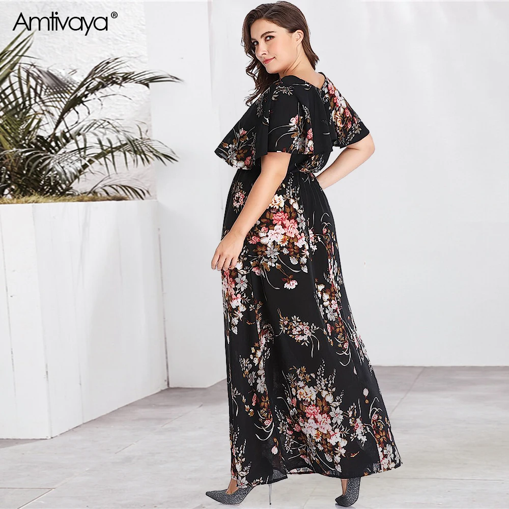 Special Offer Amtivaya весна лето 2020 женское Макси платье с v образным вырезом с коротким рукавом с цветочным рисунком длинное платье богемного размера плюс э... Discount 61% Today!
