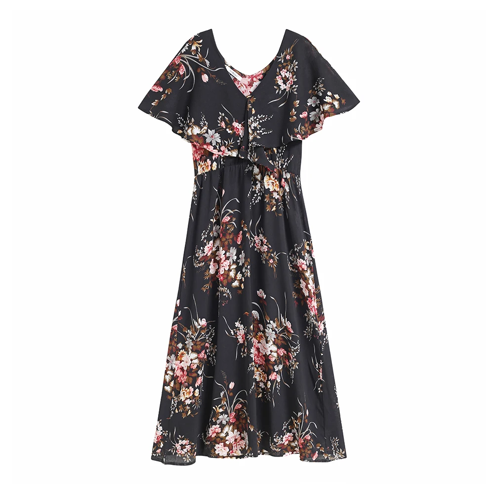 (61% Off) Купить Amtivaya весна лето 2020 женское Макси платье с V образным вырезом коротким рукавом цветочным рисунком длинное богемного размера плюс э... Продажа Дешево