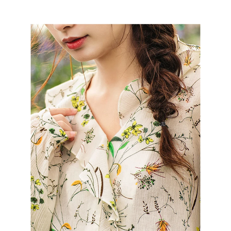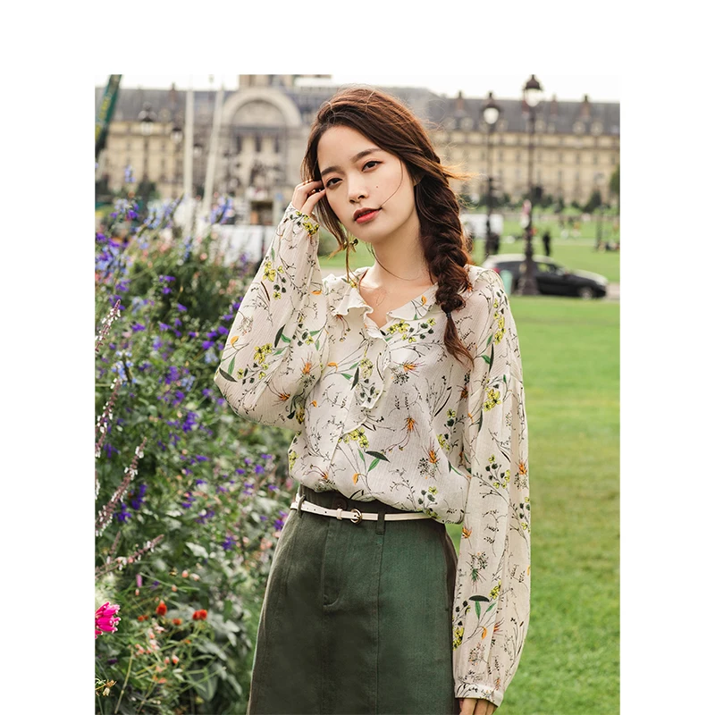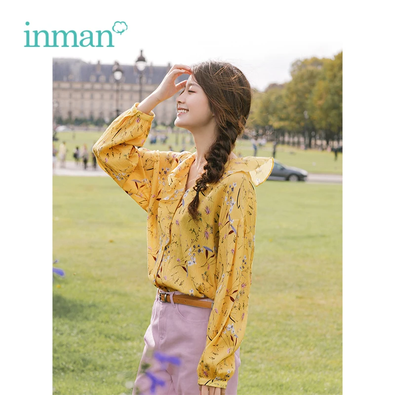 (61% Off) Купить Инман весна осень V образный вырез литературный цветочный ретро праздничный Стиль Повседневная Свободная Женская рубашка с длинными рукав... Продажа Дешево