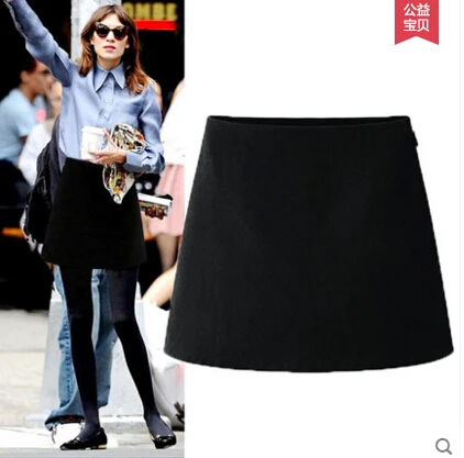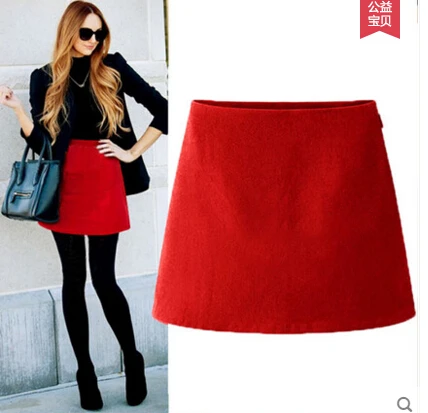 (0% Off) Купить Европейская мода 2016 осень и зима новая шерстяная однотонная трапециевидная мини юбка тонкая женская юбка с высокой талией Цена Дешево