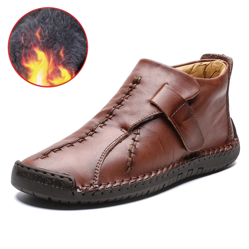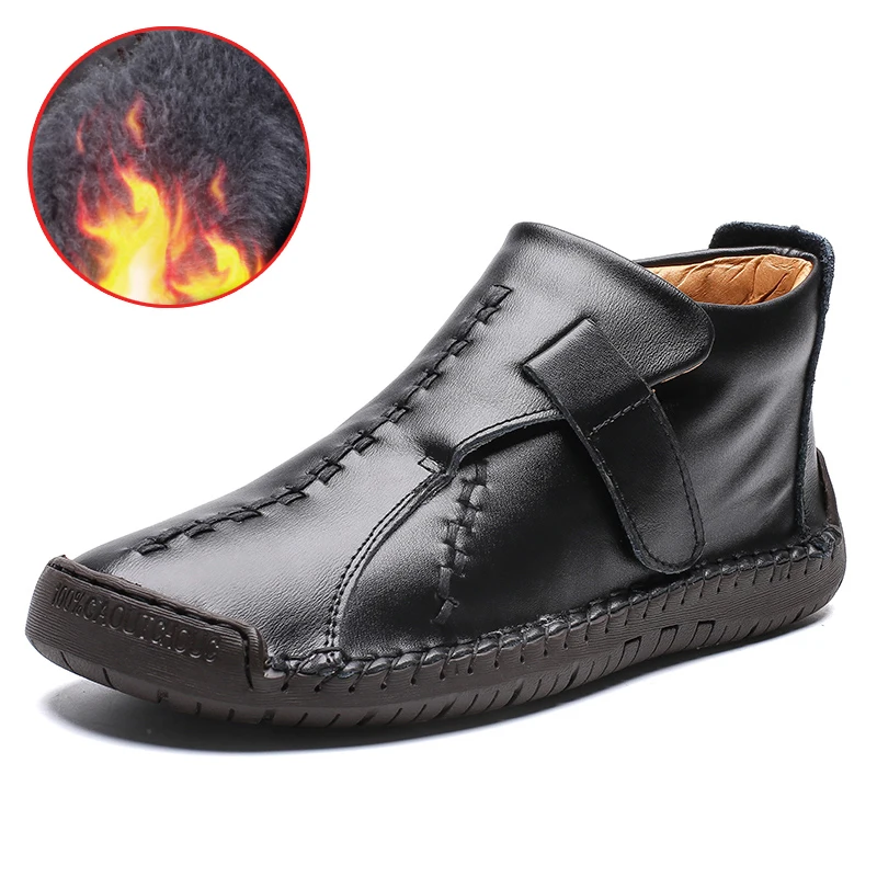 (0% Off) Купить 2019 новые зимние мужские ботинки высококачественные кожаные плюшевые ботильоны теплые на меху Осенняя повсе... Цена Дешево