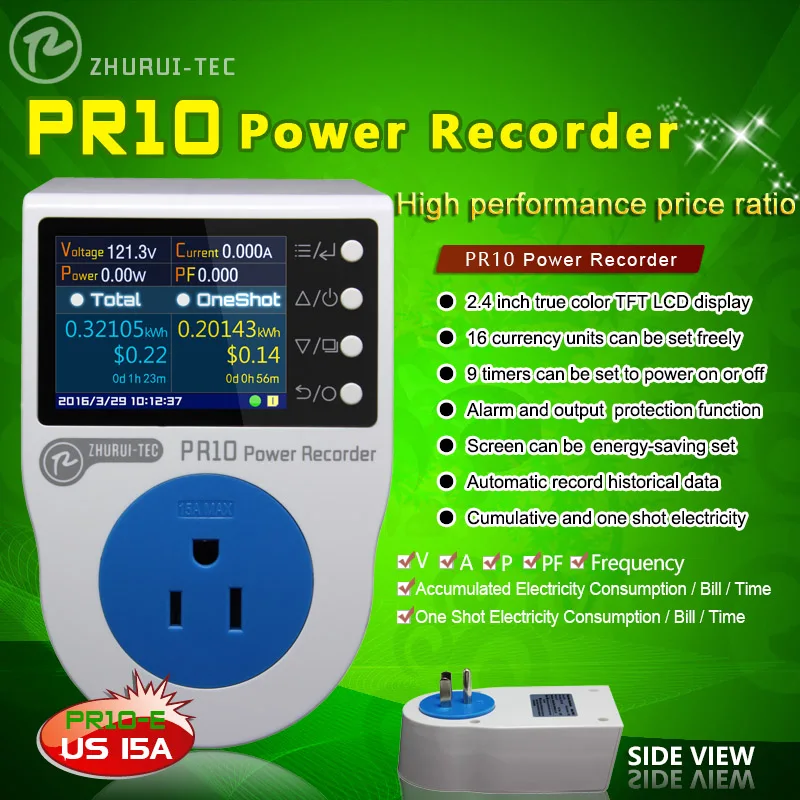 Special Offer PR10 E US15A измеритель мощности домашняя измерительная розетка Ватт метр 2,4 дюйма TFT цветной ЖК дисплей 0. 5FS 0,1 ~ 3750w Discount 0% Today!