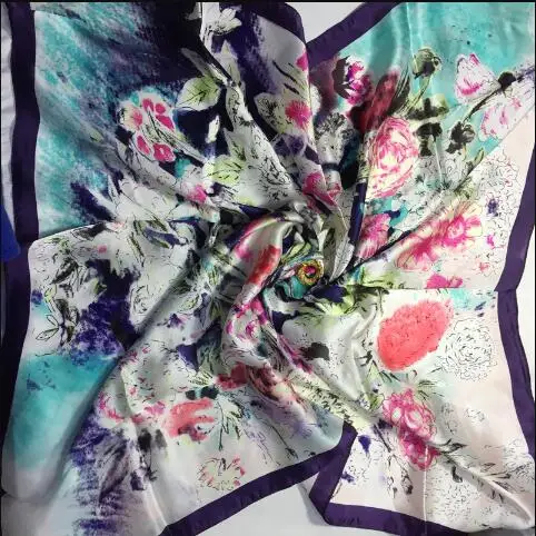 (0% Off) Купить Женский летний квадратный шарф с геометрическим рисунком из натурального шелка Продажа Дешево