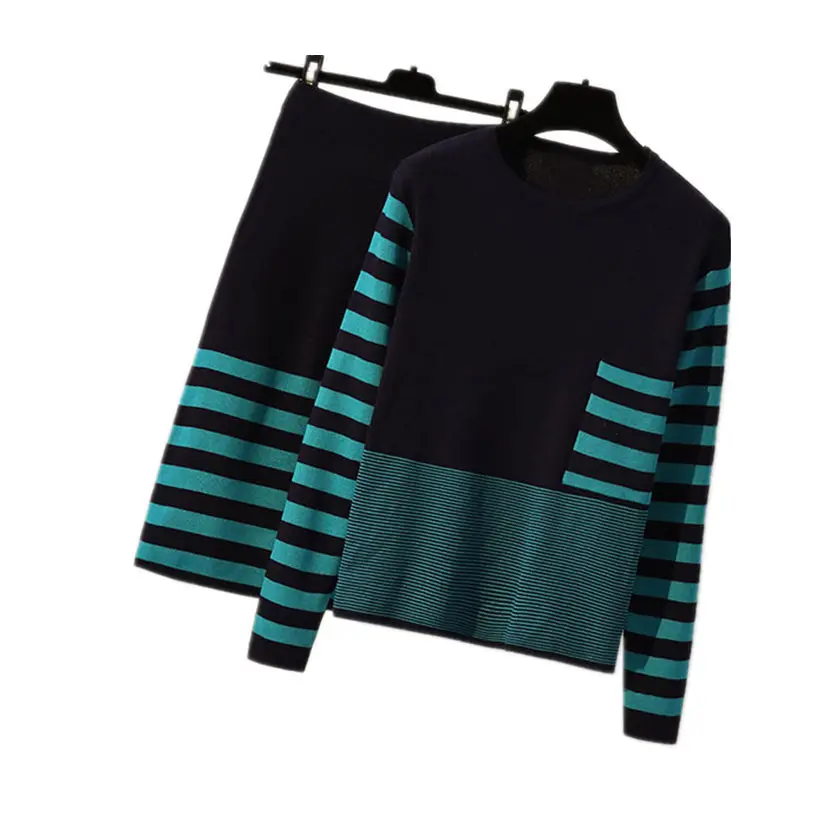 Product Name: Плюс размер 4XL новый осенний женский свитер и юбка наборы o образный вырез длинный рукав трикотажные пуловеры полосатые платья S88624LD