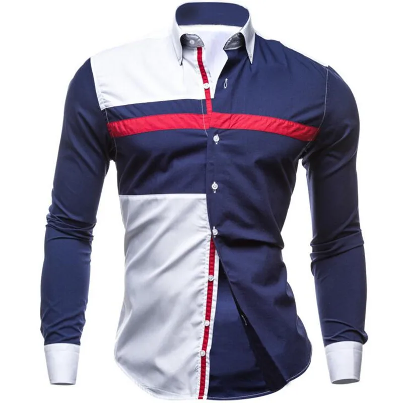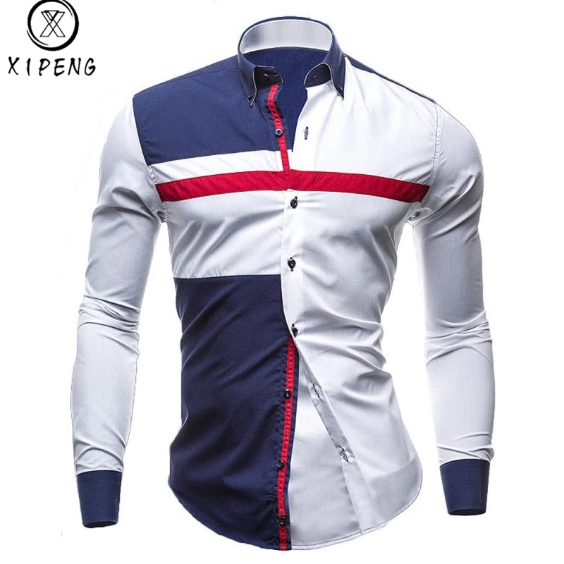 (27% Off) Купить XIPENG брендовая новая весенняя Мужская Повседневная рубашка, модная Лоскутная рубашка с длинным рукавом, приталенная рубашк... Продажа Дешево