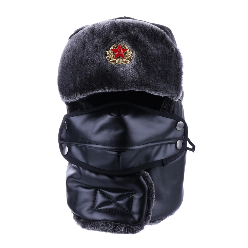 (32% Off) Купить Шапка бомбер, русская ушанка, искусственная кожа, зимний Траппер, советский значок, армейский Авиатор, шейный колпак, лыжная шапка с ... Цена Дешево
