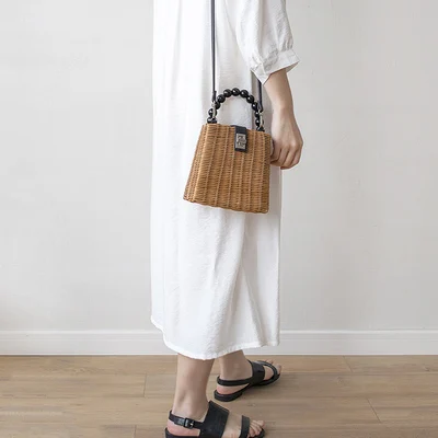 Product Name: Маленькая сумка тоут, соломенная сумка, Портативная сумка ручной работы, женские плетеные пляжные сумки из ротанга для женщин, дамская сумо...
