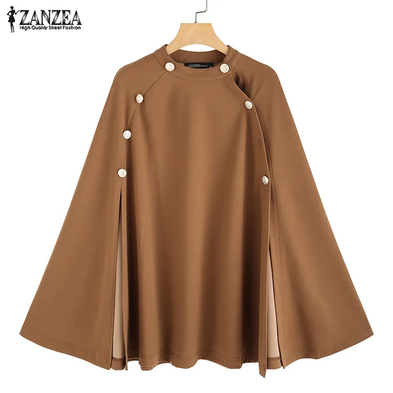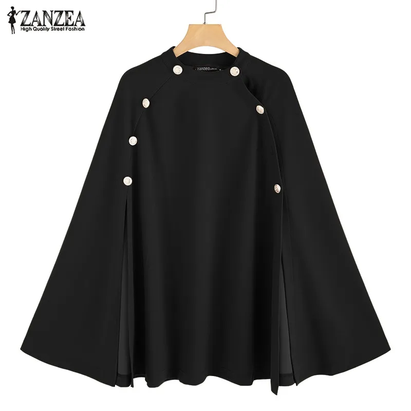 Product Name: Модные однотонные пончо ZANZEA с разрезом; осенний плащ без рукавов; кафтан; Женская Повседневная накидка; пальто; ветровка; женские пуловеры н...