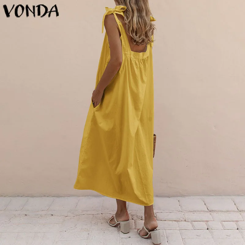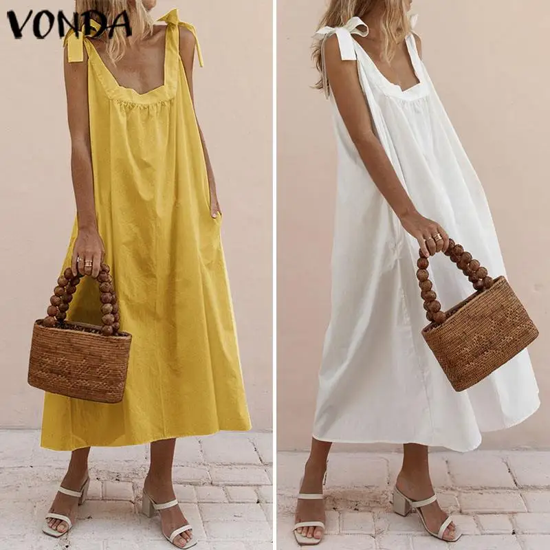 (38% Off) Купить VONDA, сексуальное вечернее платье без рукавов, лето 2019, сплошной цвет, богемный стиль, пляжный сарафан размера плюс, винтажный Vestidos Femme, ... Цена Дешево
