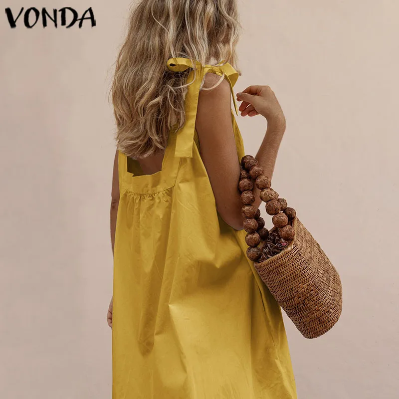 Special Offer VONDA, сексуальное вечернее платье без рукавов, лето 2019, сплошной цвет, богемный стиль, пляжный сарафан размера плюс, винтажный стиль, Vestidos Femme, ... Discount 38% Today!