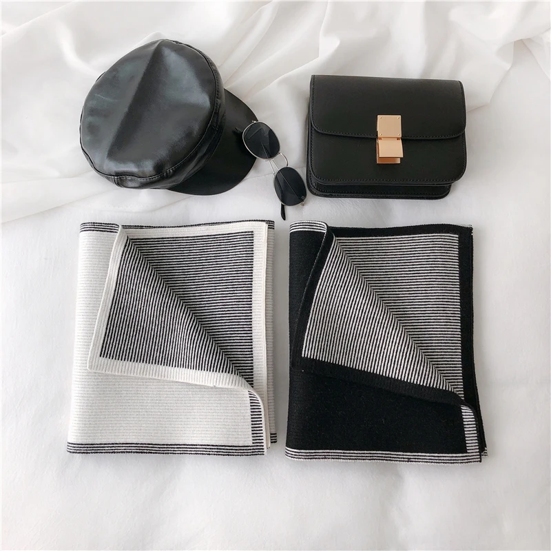 Product Name: Женская Европейская шаль Luna Dolphin, 180x30 см, шерстяная зимняя полоска, двусторонний Шерстяной палантин из пашмины, шикарный черно белый шарф