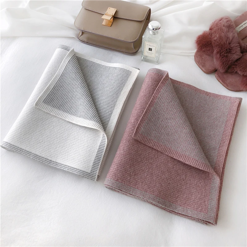 (40% Off) Купить Женская Европейская шаль Luna Dolphin, 180x30 см, шерстяная зимняя полоска, двусторонний Шерстяной палантин из пашмины, шикарный черно белый шарф Цена Дешево