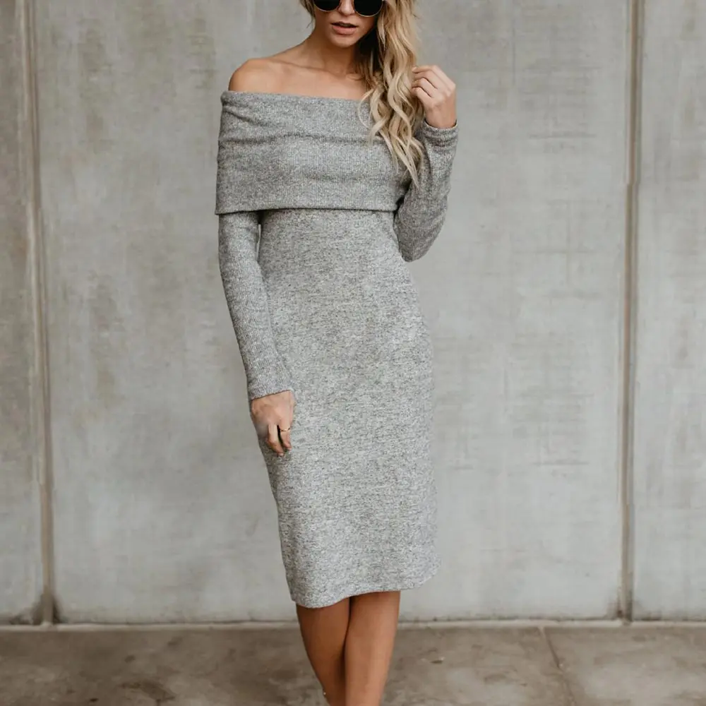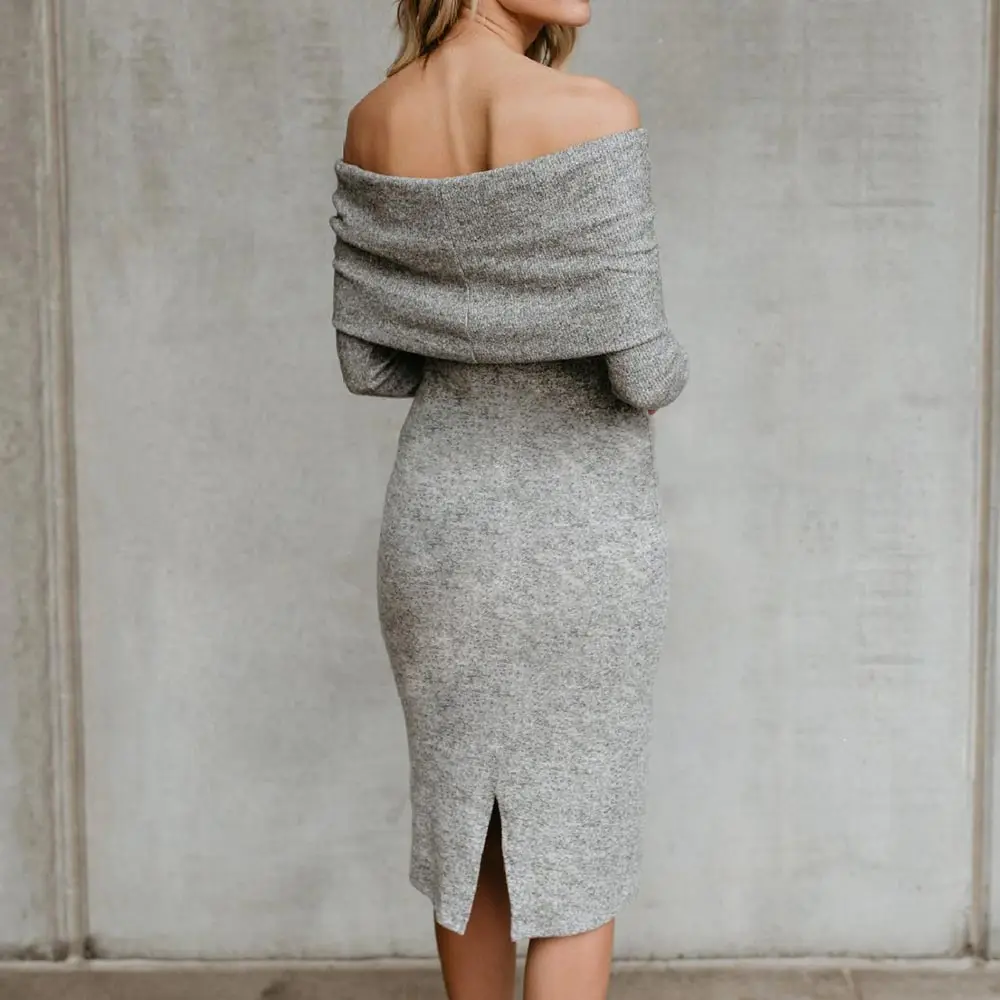 (41% Off) Купить Женское трикотажное платье Jocoo Jolee, облегающее с открытыми плечами и длинным рукавом, платье свитер, осенне зимнее вечерне... Цена Дешево
