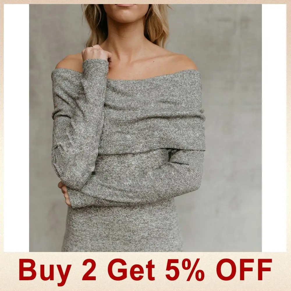 Special Offer Женское трикотажное платье Jocoo Jolee, облегающее платье с открытыми плечами и длинным рукавом, облегающее платье свитер, осенне зимнее вечерне... Discount 41% Today!