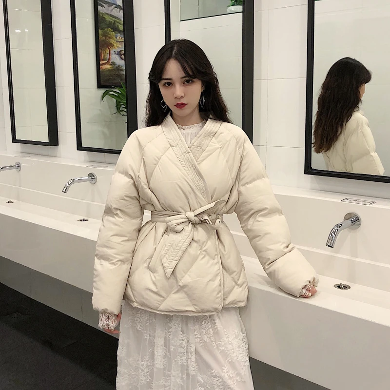 (43% Off) Купить 2019 зимнее Новое поступление Женская однотонная парка пояса для пальто длинный рукав толстая и теплая плюс размер Корейская повседневная ку... Продажа Дешево